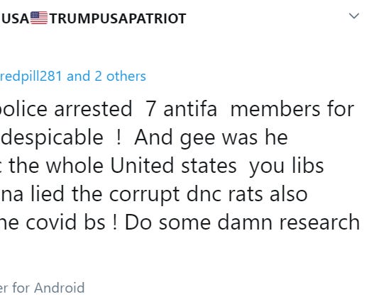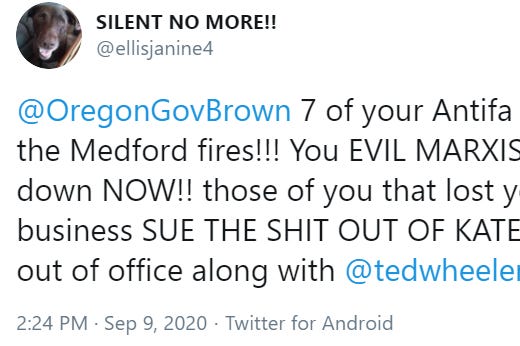 So, where is the “Antifa are thrilled to hear this” line from RT’s headline, which highly insinuates an official statement that protestors support the wildfires for some bizarre reason.